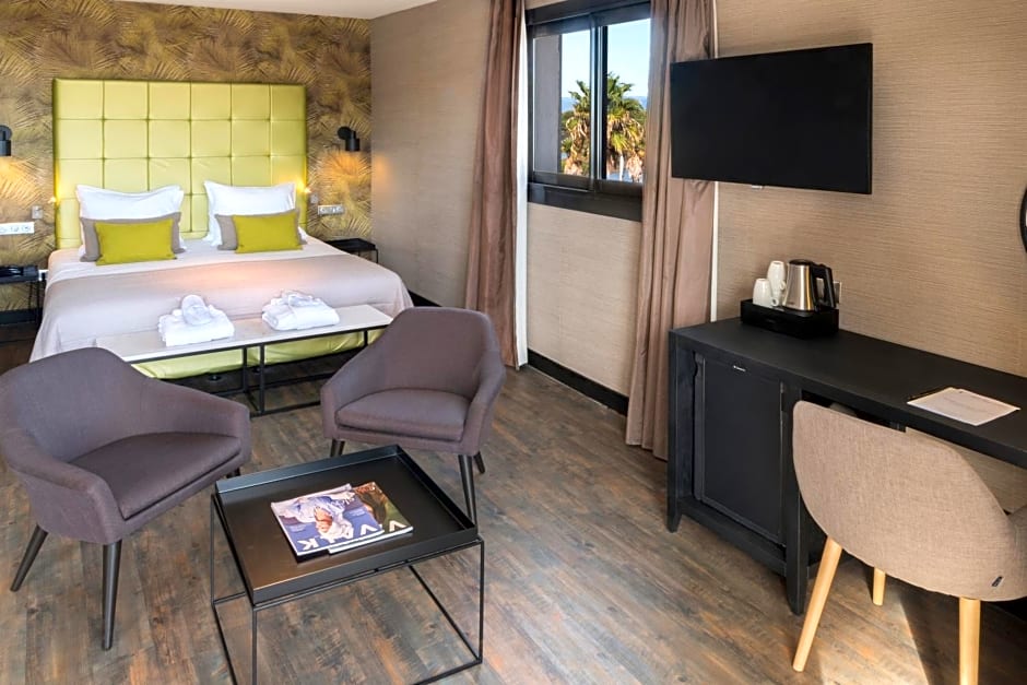 This room features views of Saint-Raphaël Bay, coffee and tea making facilities and a small fridge.